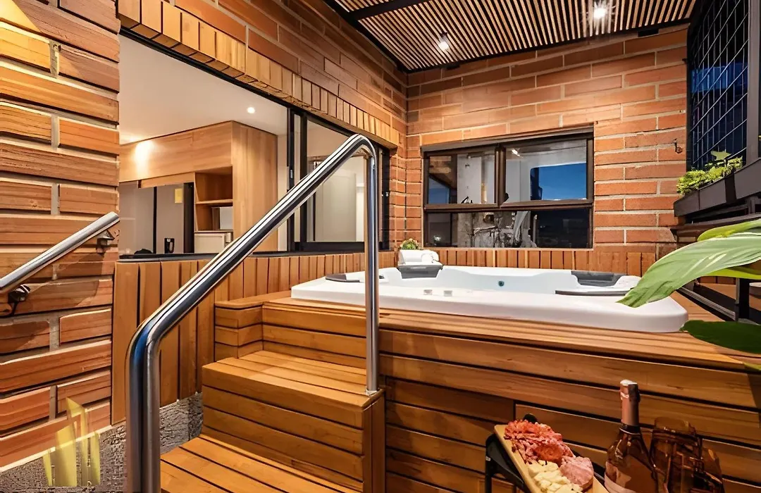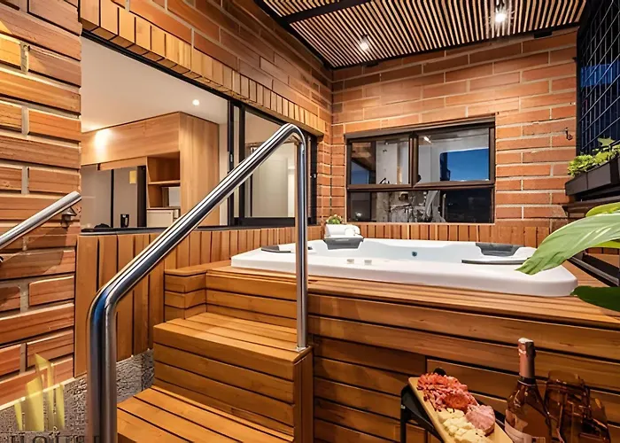 Tivoli 202 - Escapada Premium Con Jacuzzi Privado Apartment Medellin features views of the street and is situated nearly a 25-minute walk from the El Tesoro Shopping Park. Guests can relax and unwind during their stay at this apartment, which has access to a spa salon.
